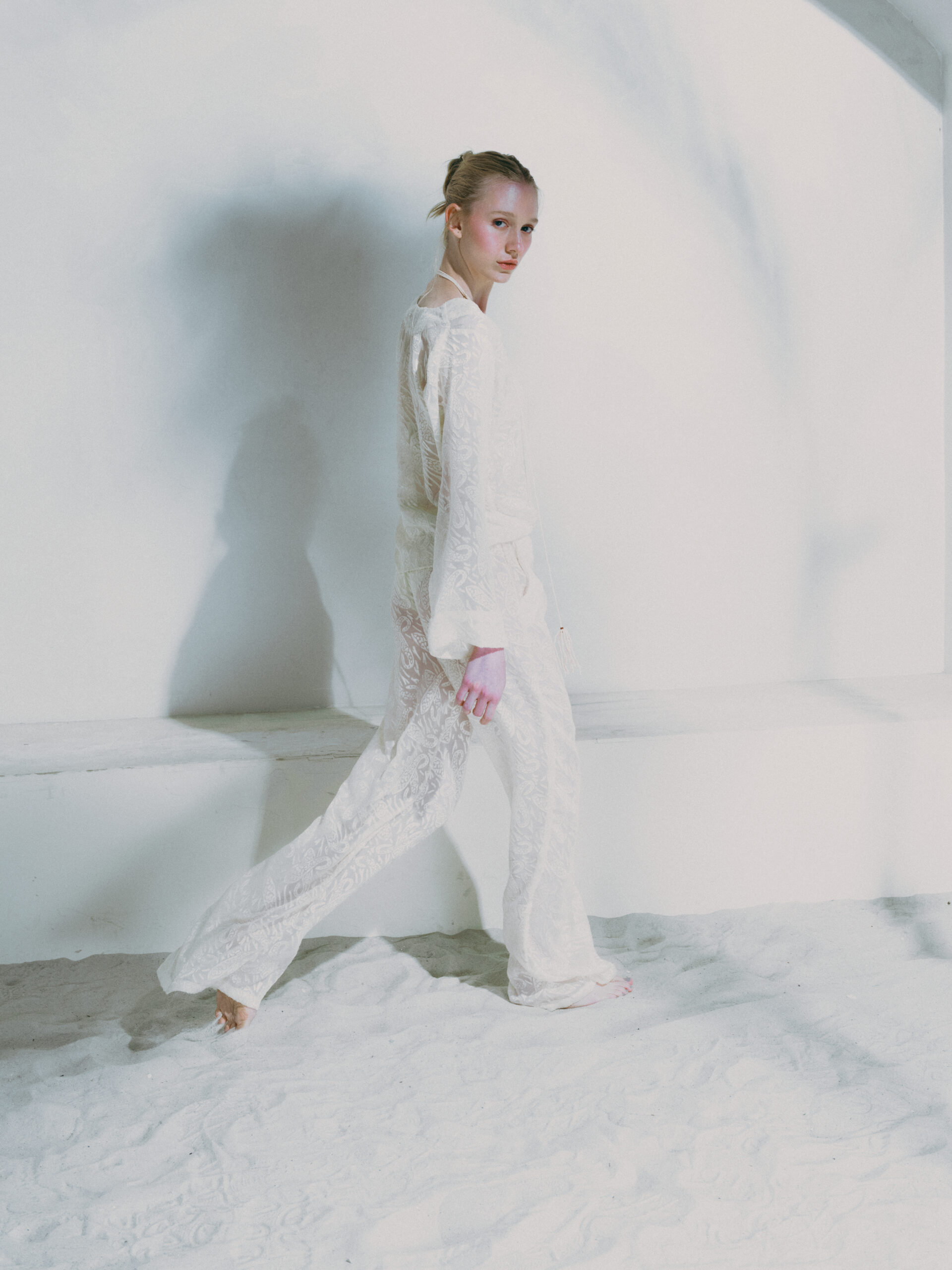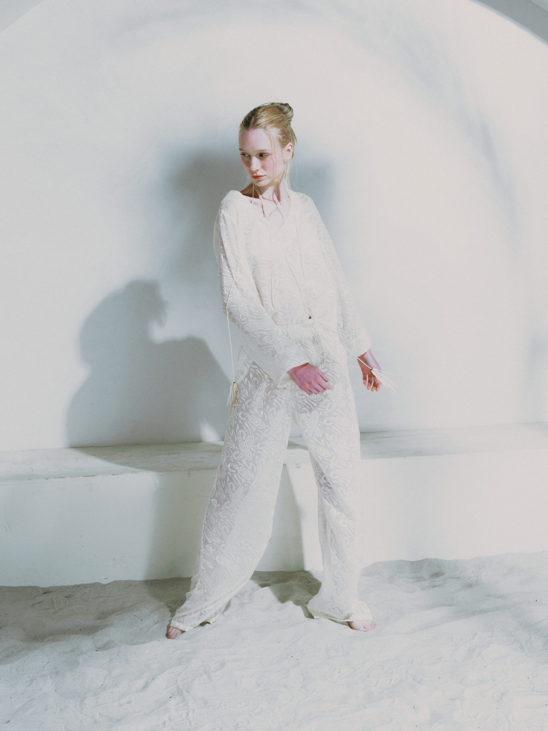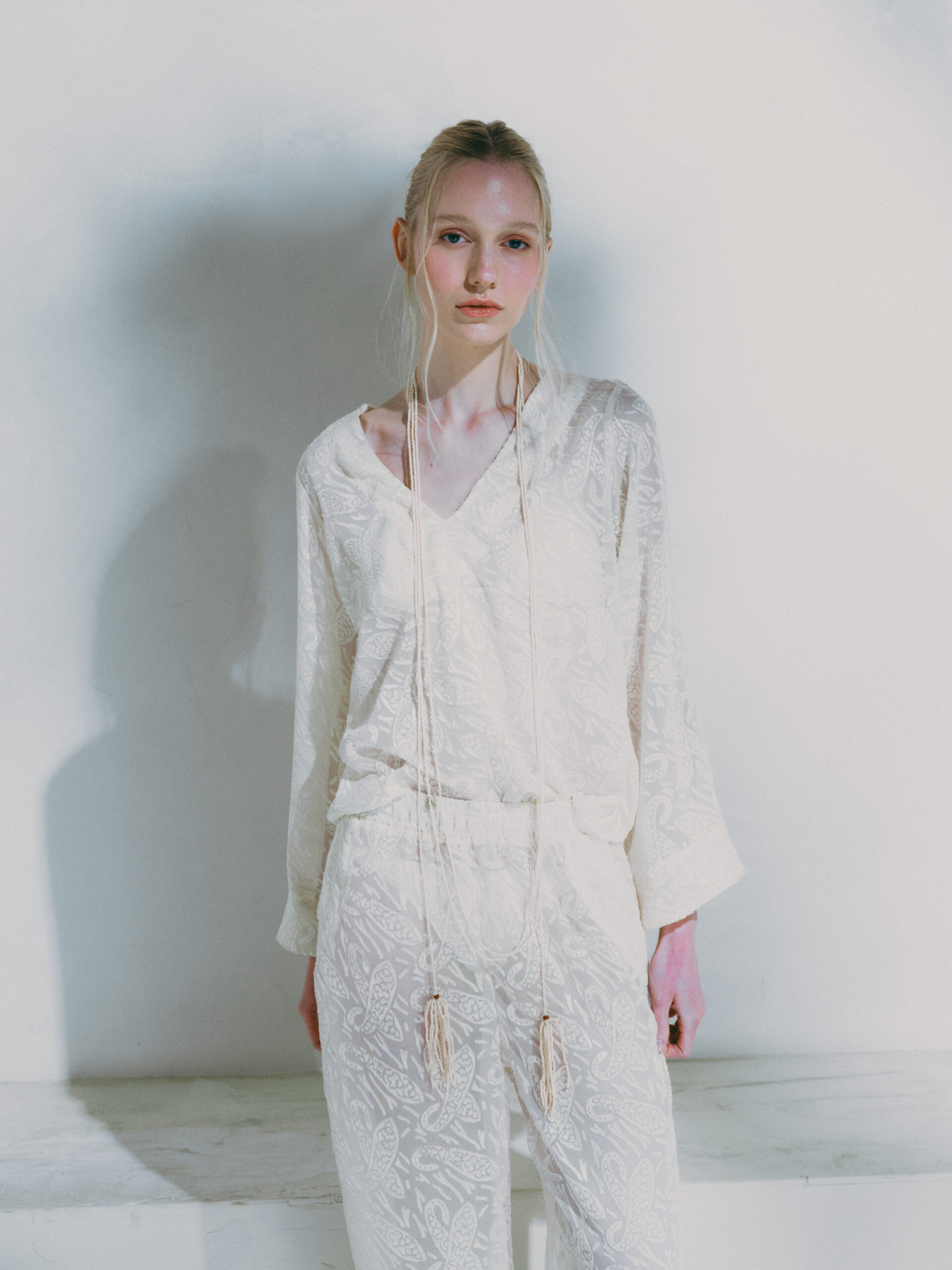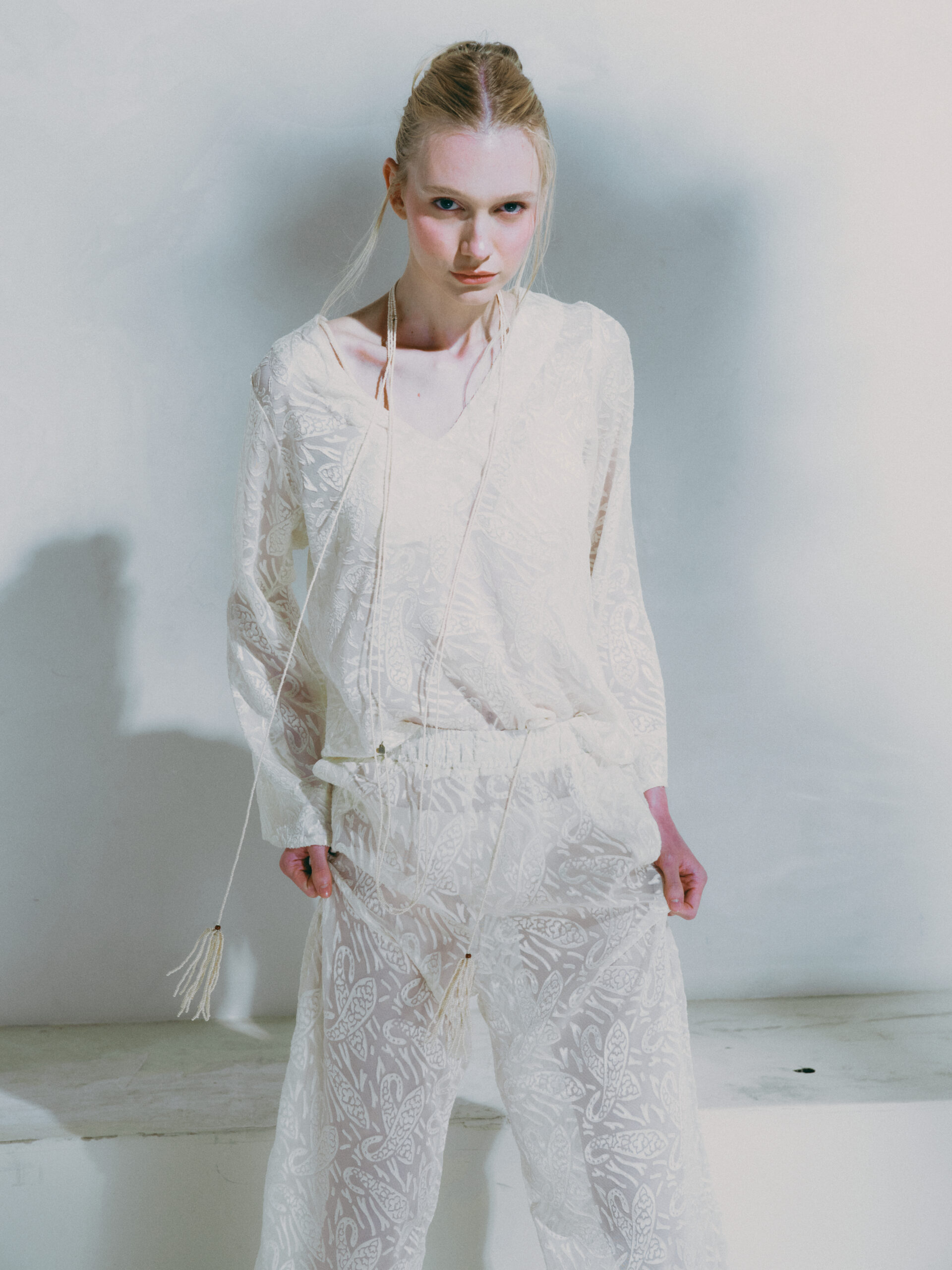 Calça longa com caimento levemente solto, proporcionando conforto e elegância ao vestir. Possui elástico na cintura, garantindo ajuste prático e confortável ao corpo. O tecido com leve transparência e toque de seda traz sofisticação e leveza à peça. Disponível na cor off, é perfeita para compor looks frescos, modernos e ideais para dias de verão ou produções à beira-mar.